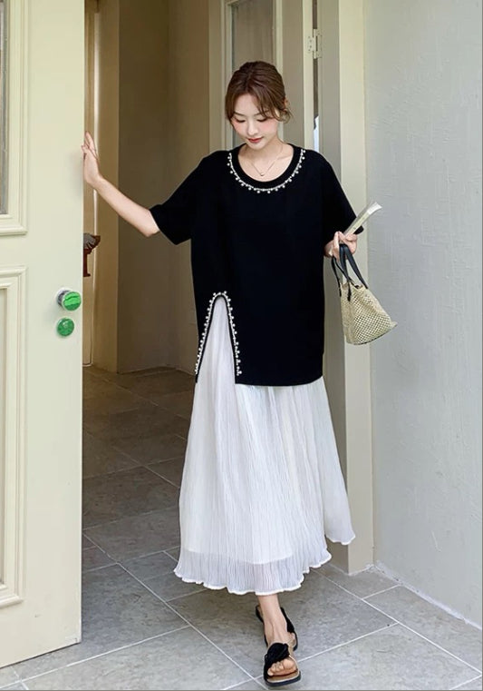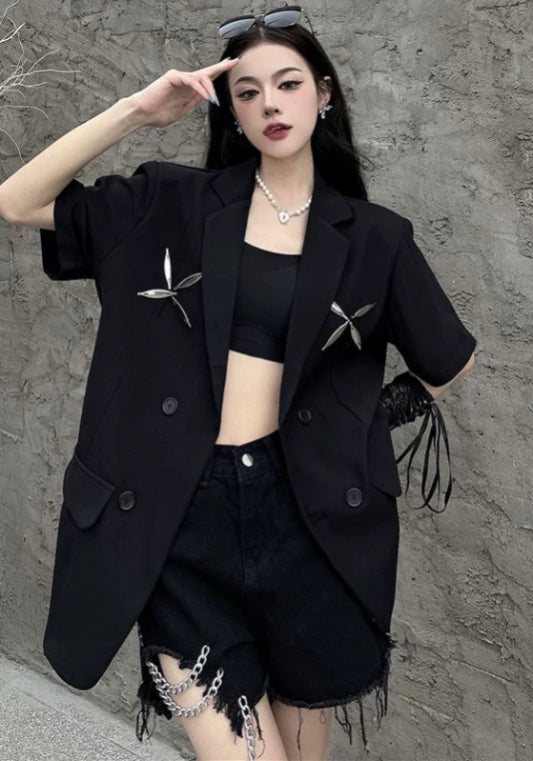 ダーツ刺繍入り ゆったり半袖ジャケット