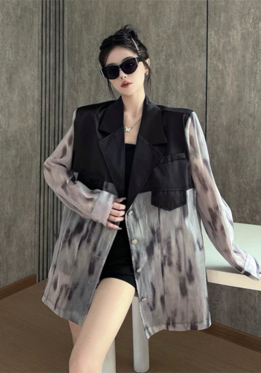 ✨ 高級感のあるスーツ素材 × 個性派グレーカラー切り替え