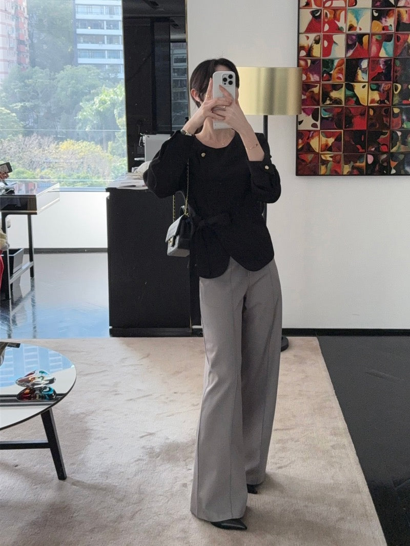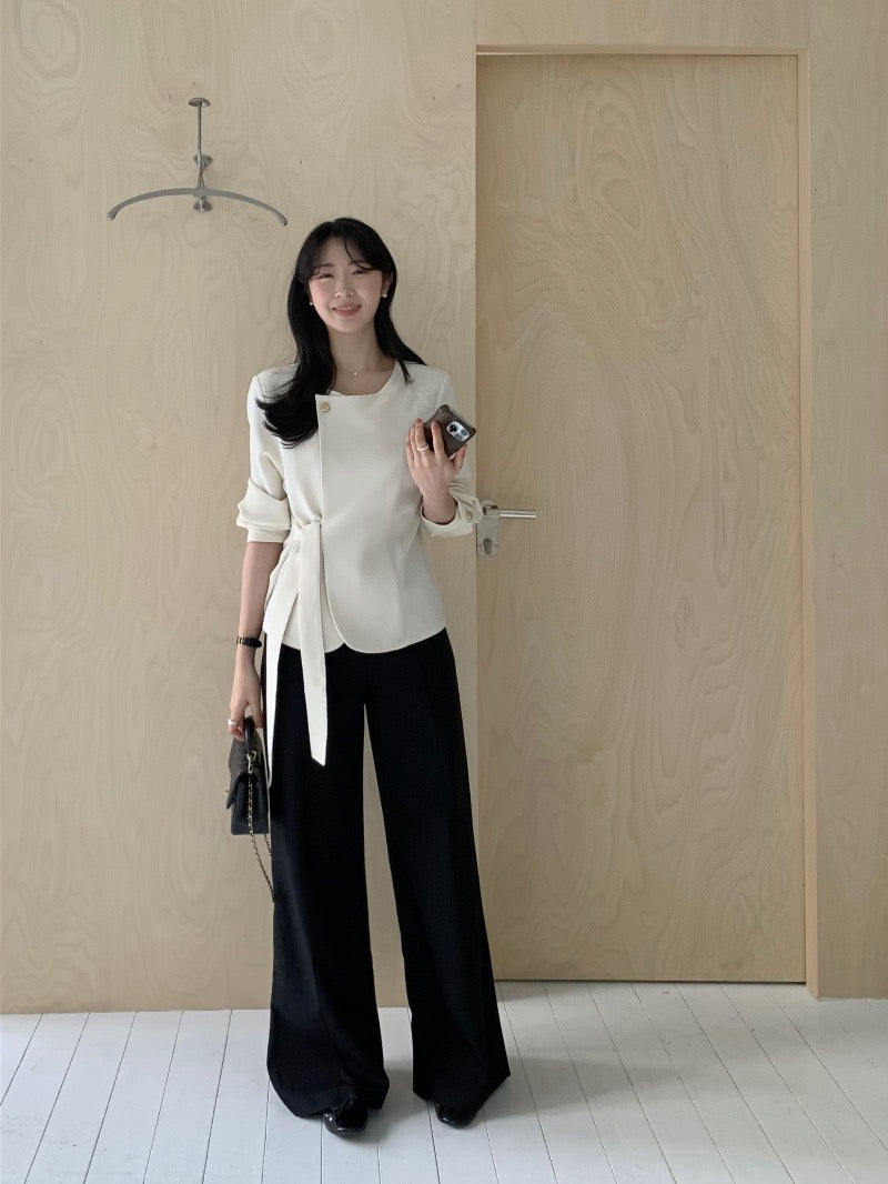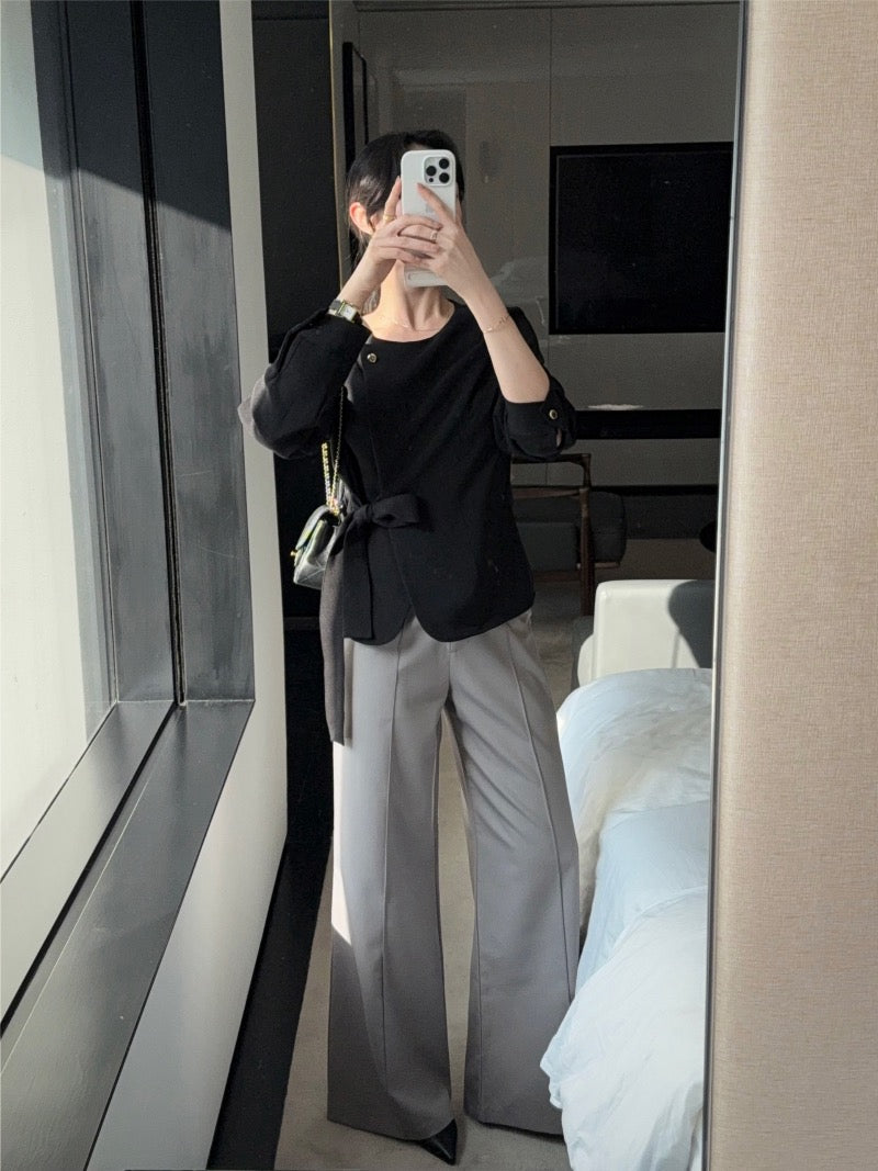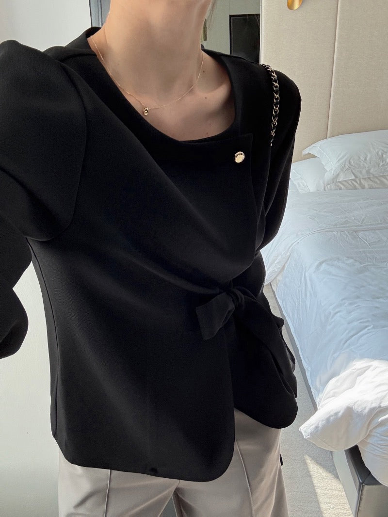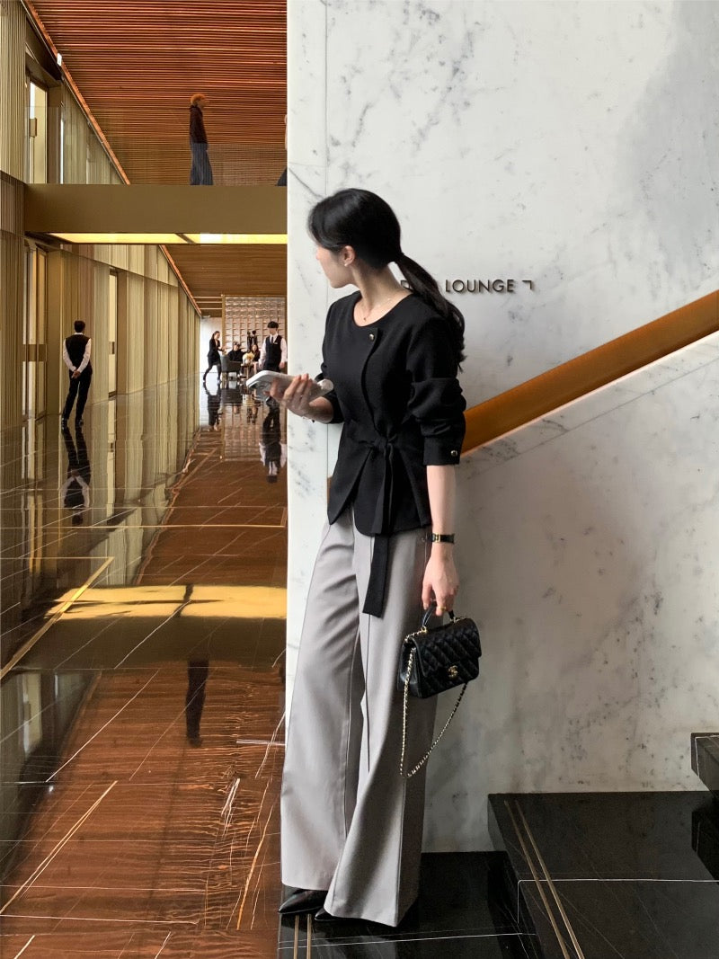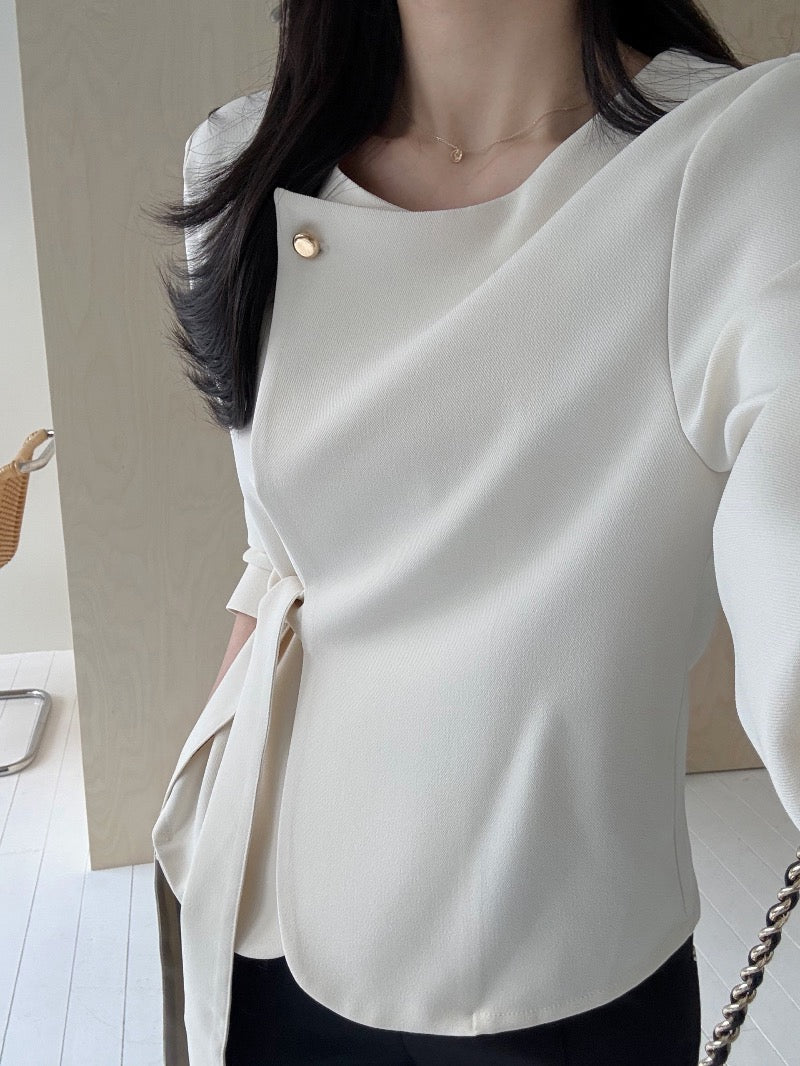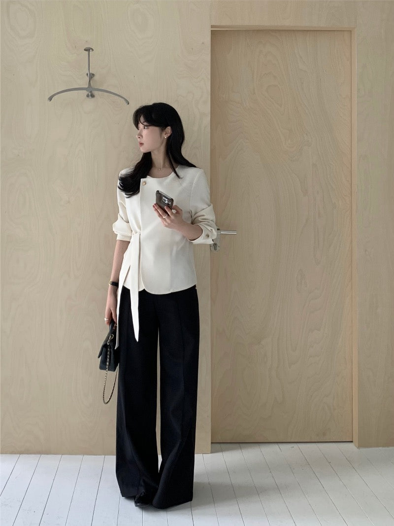 圓領一粒扣綁帶外套